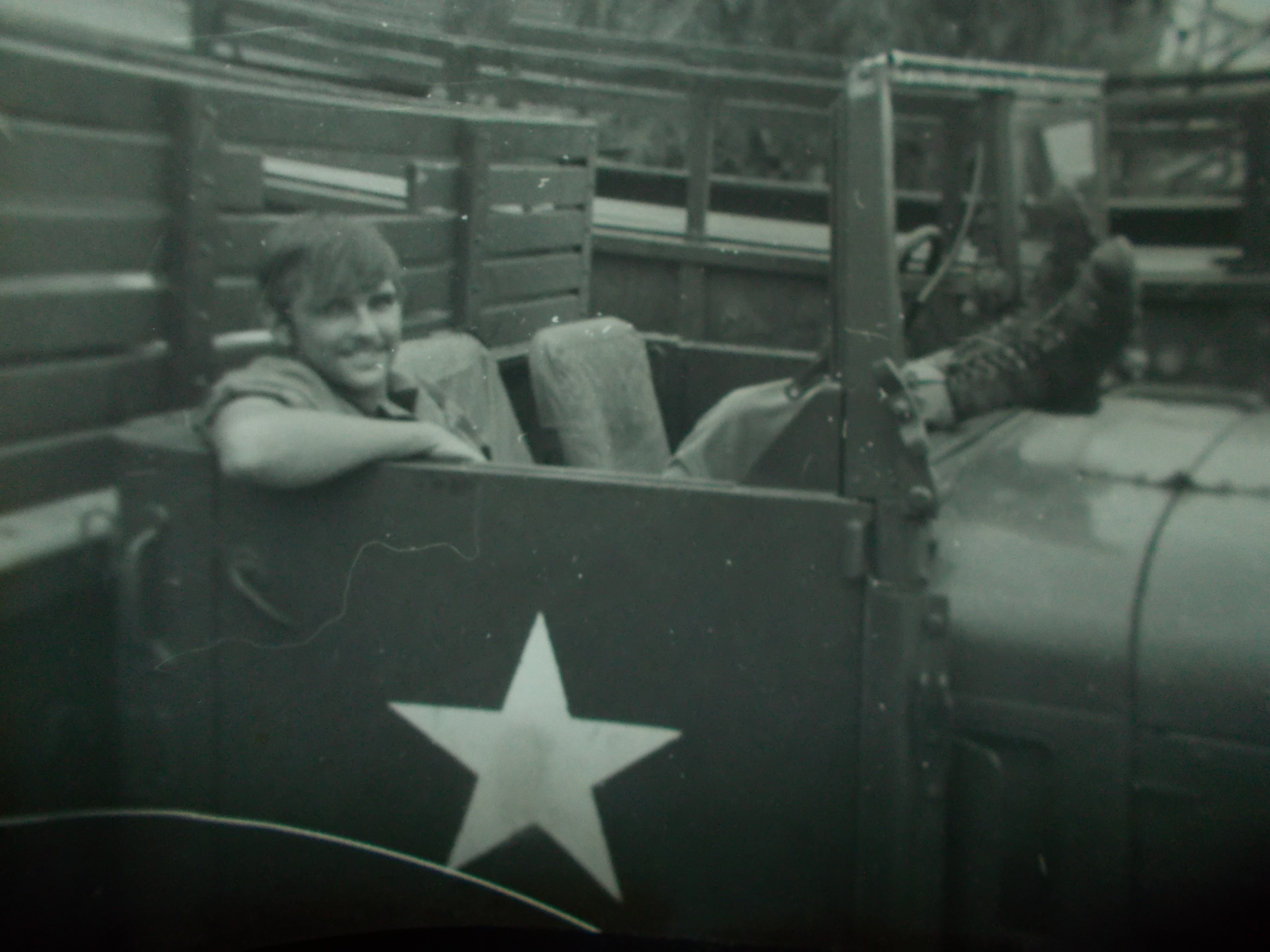 (Top and below) Having said my goodbyes, sittin’ on my butt, waiting for a ride to DaNang Air Base from Massachusetts Phil, and smiling big with just a few days left in-country. Even cleaned up my weathered boots for the flight down to Long Binh for out-processing and was hoping to get back to the world with that hair, which no one had cared about up-country. My year was up and so was my hitch. I would become a civilian 24 hours after my arrival at Oakland Army Base, there to jump through the final administrative hoops. After several dirty looks from the lifers at Long Binh, a snarky Captain pulled me aside and told me they could “accidentally misplace” all my records, leaving me sitting there in limbo for a week or two, if I didn’t stop losing my way to the haircut line. If I left RVN as scheduled, I’d be home just in time  for Thanksgiving.  I “found” the line and gave the clippers guy $5 American to leave at least half of the hair. He did, but added, “it’s your ass, man.” I slicked the rest back, and made it onto that Freedom Bird, and then home, with no further hair hassles. It smelled like  . . . victory.